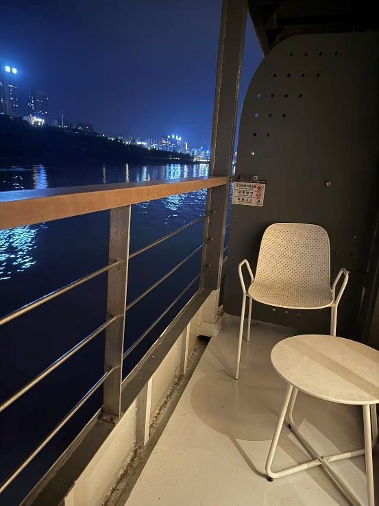 后来在第二天晚上的船长酒会上听杜船长介绍,阿波罗是长江上第六代豪华三峡游轮,采用海上游轮的双船底设计,噪音和平稳度都非常好,基本感受不到发动的噪音。