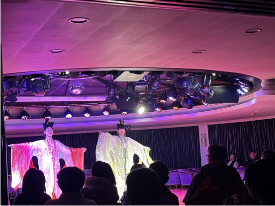 18:30游轮上船长欢送宴会,晚餐后,又观看船员的文艺表演。