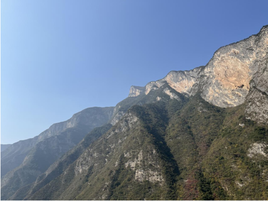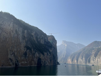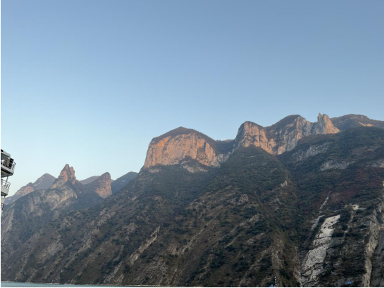 中午,美维凯娜游轮通过过瞿塘峡,打卡十元人民币背面图案“夔门天下雄”。