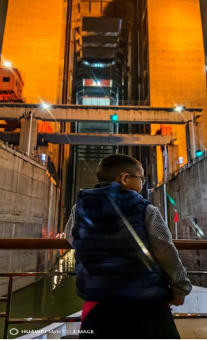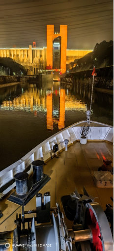 无论对于孩子还是我,还是全船的游客,这都是一个特别难忘的夜晚,长江探索号的其他行程一般都是白天通过升船机,这次的圣诞之旅我们有幸赶上了探索号在长江的夜色中通过升船机。