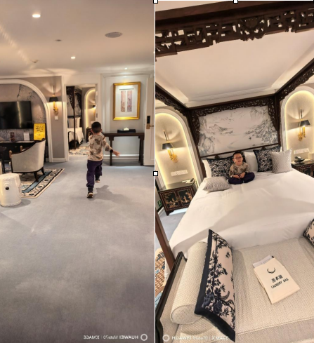 房间配有一张1.8米×2米的四柱雕花大床,总面积105平米,娃几乎是奔跑来奔跑去无比自由开心。