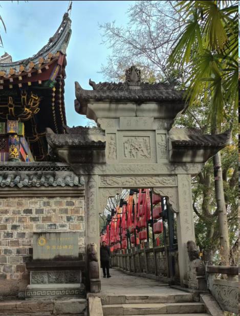 用餐完毕,凯娜号刚好靠岸,白帝城到了。应该说,凯娜号的时间安排之精准,令人咂舌的准!踏着微微起伏的趸船,登上白帝城的风雨廊桥。看着名扬天下的白帝城桥头巨大的诸葛亮雕塑。建于西汉末年的子阳城,被自号白帝的公孙述改称为白帝城。但这座白帝城里无白帝,只供奉着,诸葛亮,刘备,关和张飞。倒是诗仙,诗圣们在这里留下了诗篇名句。