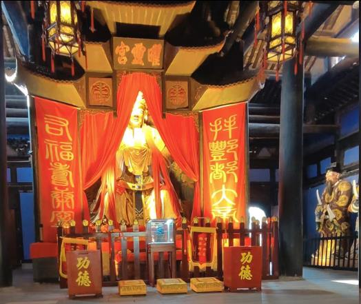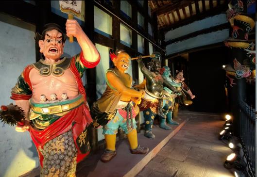 据说。别看现在白天人山人海,可夕阳西下后。那可是一个人都不敢进来。毕竟,每个人死后都要来这阴曹地府报到,然后才能投胎转世。太阳下山后,这里可是鬼的世界。巡视的夜叉,黑白无常,可是时刻出没高达六米的阴天子阎王爷。金冠蟒袍。怒目圆睁,令人生畏,他下看众生,明辨善恶。在场的芸芸众生,莫不心生敬畏,无人高声。