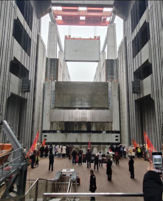 最后一天6:30分去餐厅享用早餐。窗外,接我们去三峡大坝体验升船机的"楚风号"客轮,已经灯火辉煌如同新娘一般地进港了!这里也是我们告别凯娜号的地方——湖北秭归港,位于湖北秭归县茅坪镇。