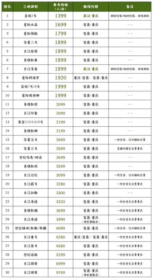 三峡游轮最火爆的重庆到宜昌4天3夜价格表+游轮推荐,已为您备好~