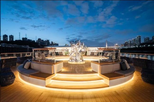 长江文化讲座、三峡工程纪录片放映、船员歌舞晚会、顶层甲板观景平台等,都是船票自带的精神享受。