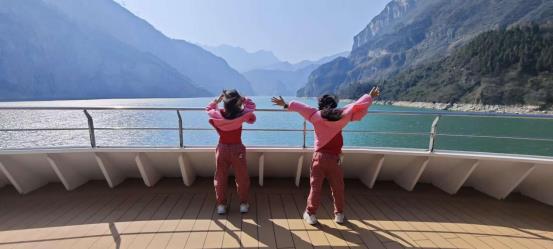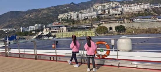 回船不久长江叁号就启航了,三峡游轮太安静太稳了,我和妹妹在跟吧台哥哥姐姐聊天都没发现启航的事,看到爸妈兴奋的来找我们,才知道船已经启航。