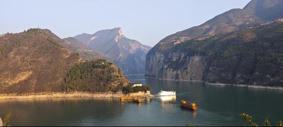 天色渐暗,夕阳中的层峦叠嶂的三峡,让我明白了水墨画的美,还有“船到山前必有路”的意境。