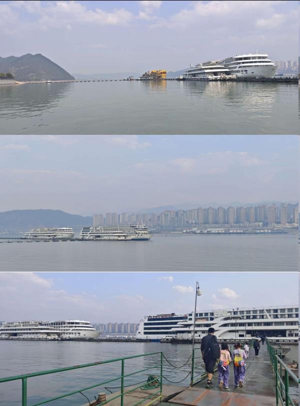 看完崖壁投影,回程看到我们长江叁号的全貌,原来这艘三峡游轮这么大啊!